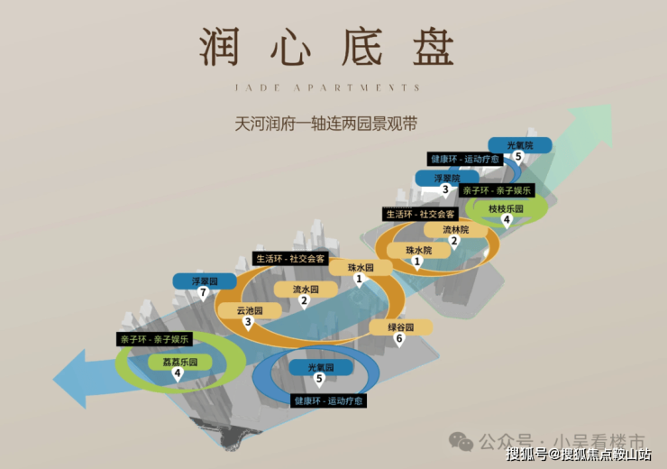市中心低密大城,容积率约3.6,外部配建约1.2万㎡漫步公园,景观构建润系四大主题生活环、三大未来生活场景,让全龄段居者享受松弛生活。
