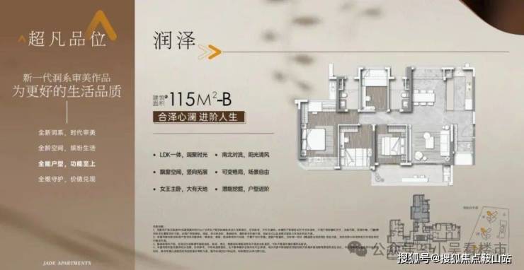 建面115平四房两卫,这个户型从玄关、客餐厅、主卧都做到了南北对流,另外还算五开间朝南,无论客厅还算主次卧,光线都非常好,总价560万起。