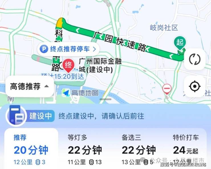 自驾去往金融城:岐山路转广园快速路,再转到科韵中路,全程12公里到金融城,耗时20分钟左右。