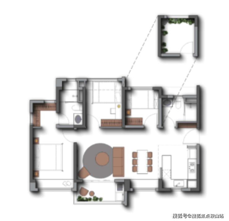 86㎡三房两厅两卫:南向设计,动静分区,主卧带飘窗,适合新婚家庭;不足:北向次卧空间较小。