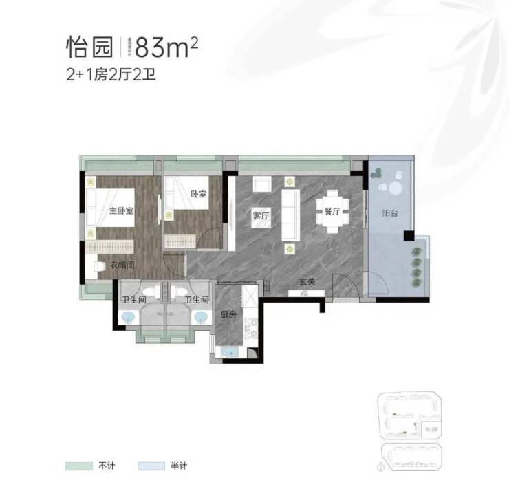 户型面积:建面约83㎡-120㎡三至四房