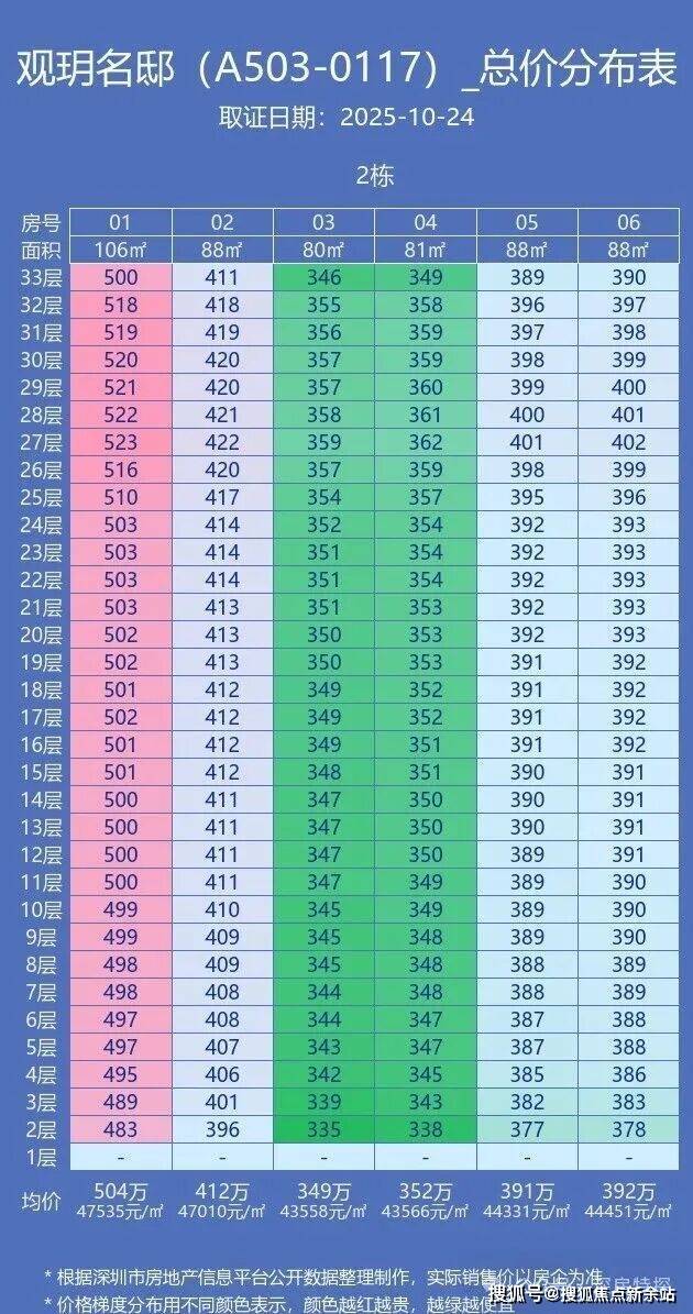 光明城,中建观玥名邸于2025年10月24日取证入市,本次加推2栋,共191套房源,面积有80-89m²的3房2卫,107㎡的4房2卫户型,共192套房源,备案均价4.51万/平,备案单价4.17-4.93万/平,3房总价334-422万,4房总价482-522万,合同约定在2027年3月份带精装交房。======================