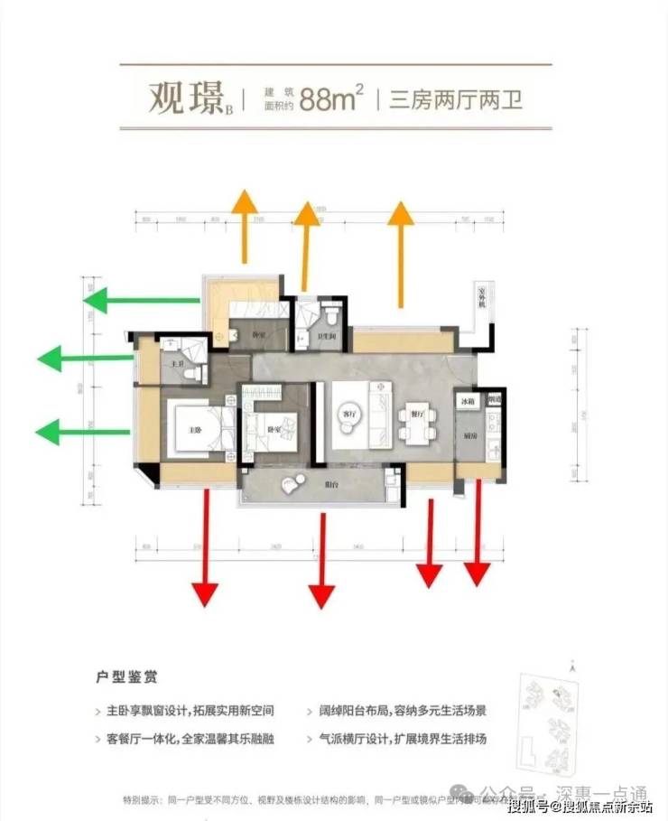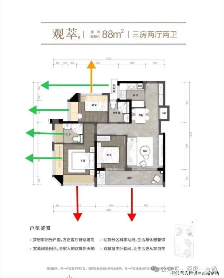 ✔️02户型88㎡横厅三房两