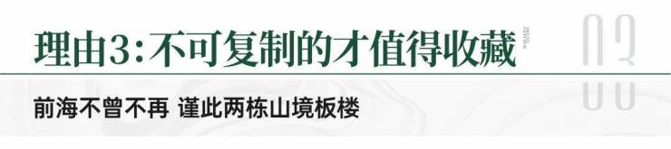TOP级前海山境奢居:仅约2.66超低密板楼,屹立前海繁境,环拥一线大南山,从尺度、舒适度、格局、景观多维重塑奢居想象,以超越价格的豪宅级品质力,序新前海山居的奢宅标杆。