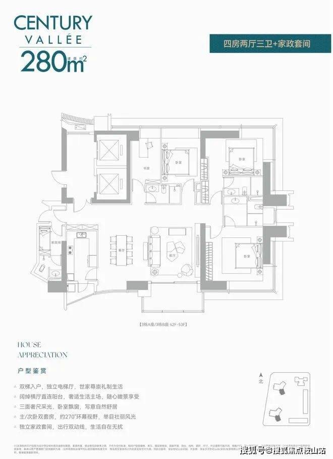 深业世纪山谷前两次都是公寓,现在住宅首发!还是定位相当高端的纯大平层,8梯3户,240㎡/280㎡配备两个独立电梯,380㎡双梯设计,实在任性!