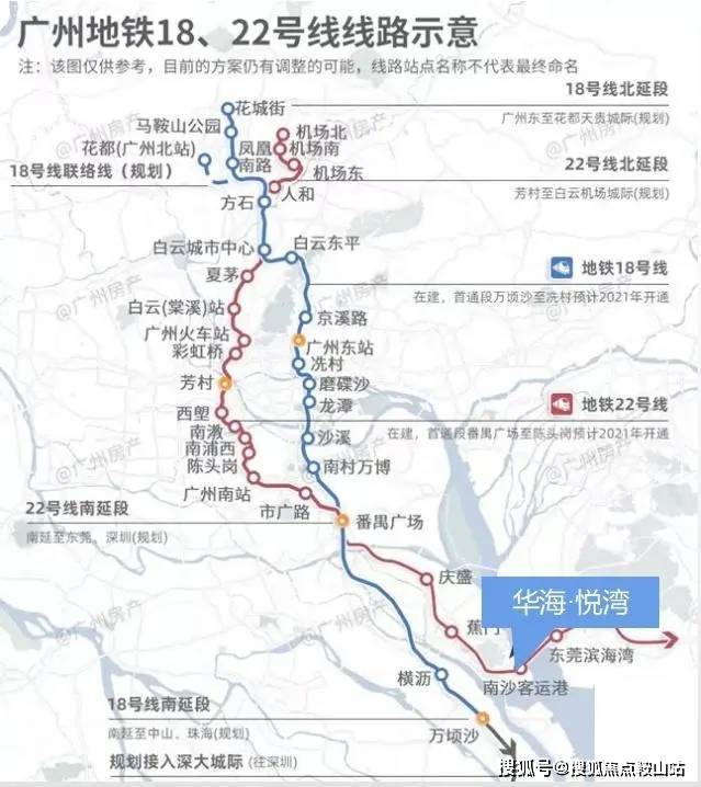 ②地铁22号线(广深跨城高速地铁-在建):规划途径南沙客运港站,北达广州南站、白云机场,东至东莞滨海湾站、深圳沙井站,换成可达宝安机场。