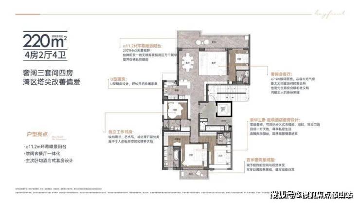 归家即赏景,建筑面积约 220-256㎡海景大平层,头排观景位,让湾海成为日常主角