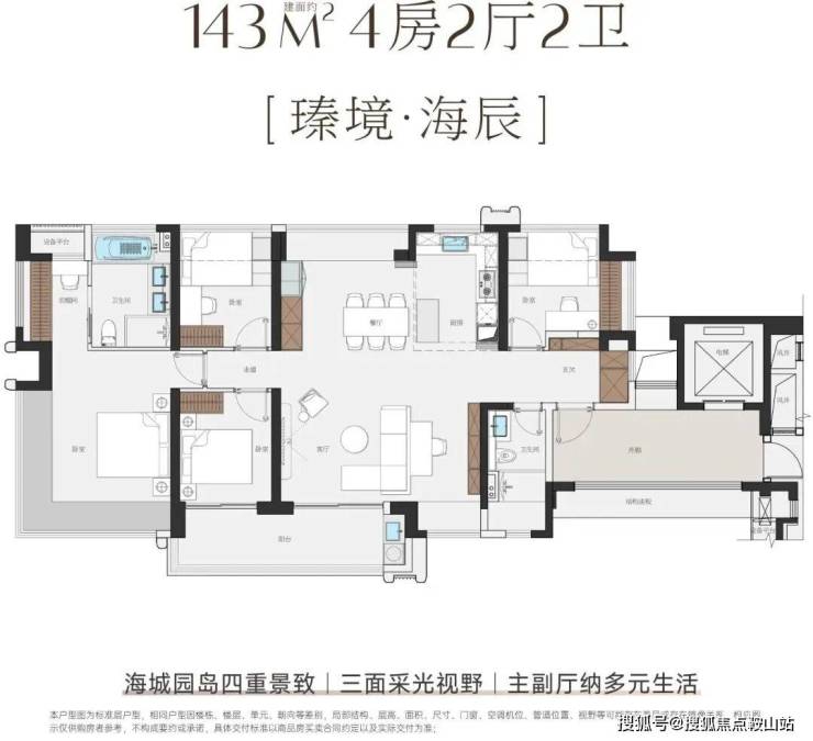 主力户型:面积从114㎡到143㎡不等,纯四房设计