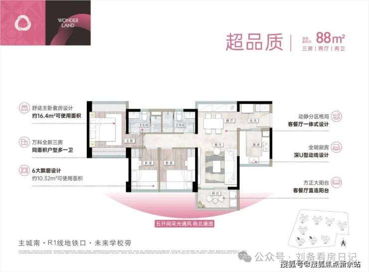 ③建面约88㎡户型,可使用率约95%