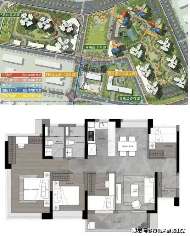 越秀大学星汇锦城坐落于番禺大学城二期板块,该板块从无名小岛发展成为国内顶尖大学园区,居住人群多为教师、教授以及地铁 4 号线琶洲外溢人口。项目拿地后发展迅速,短短一年半时间,教育、公园、商业街、地铁接驳巴士等配套陆续兑现。开盘以来销量名列前茅,深受小年轻刚需群体喜爱。项目总占地面积约 26.0 万㎡,二期约 4.6 万㎡;住宅计容建面总约 22.8 万㎡,二期约 14.8 万㎡,容积率约 3.22。二期规划 10 栋高层住宅,全楼栋平权,整盘合计约 2452 户,二期约 1600 户。目前在售建面约 75/86/102/125㎡全南 3/4 空间户型,在售楼栋为 7、8、16 栋,33 层,2 梯 5 户。