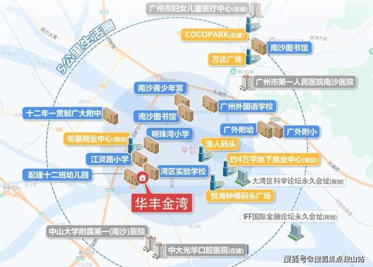 华丰·金湾所在的灵山岛尖,周边的教育资源非常丰富。项目内自带12班幼儿园,并且项目东面已经建成了湾区实验学校,北面也有新建的小学。除此之外,灵山岛尖的地下空间正在建设当中,预计将形成完善的商业配套,为业主提供便利的购物体验。医疗方面,虽然岛内暂时没有规划大型医院,但横沥岛尖的中山一院南沙分院预计将于不久后投入使用,为居民提供优质的医疗服务。