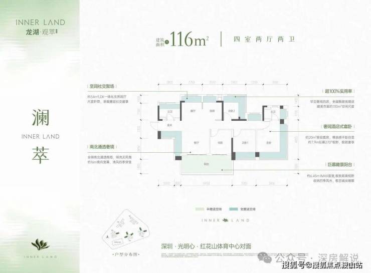 位于深圳光明区公明老城区核心地段,紧邻红花山公园(约27.3万㎡),步行可达红花山体育中心、光明区文化馆等市政设施。项目周边1.5公里范围内拥有光明区最大商业体大仟里购物中心(15万㎡)及天虹商场,2公里内可达百佳华商场,生活配套成熟。随着光明科学城建设推进,区域正逐步发展为深圳北部中心,未来将吸引更多高新技术企业和科研机构入驻,提升区域整体价值,整体区位兼具成熟生活氛围与未来发展潜力,是光明区不可多得的核心地段楼盘。
