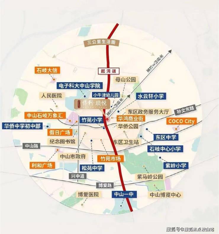 如果说 “悦” 字系是保利对城芯的严苛筛选,那么中山保利琅悦的选址,便是对城市发展脉络的精准洞察。项目择址中山东区价值高地,起湾道中轴—— 这里是中山的行政、经济、文化核芯,汇聚市政府、金融总部、高端商圈、优质学府,更串联起岐江新城的未来蓝图。