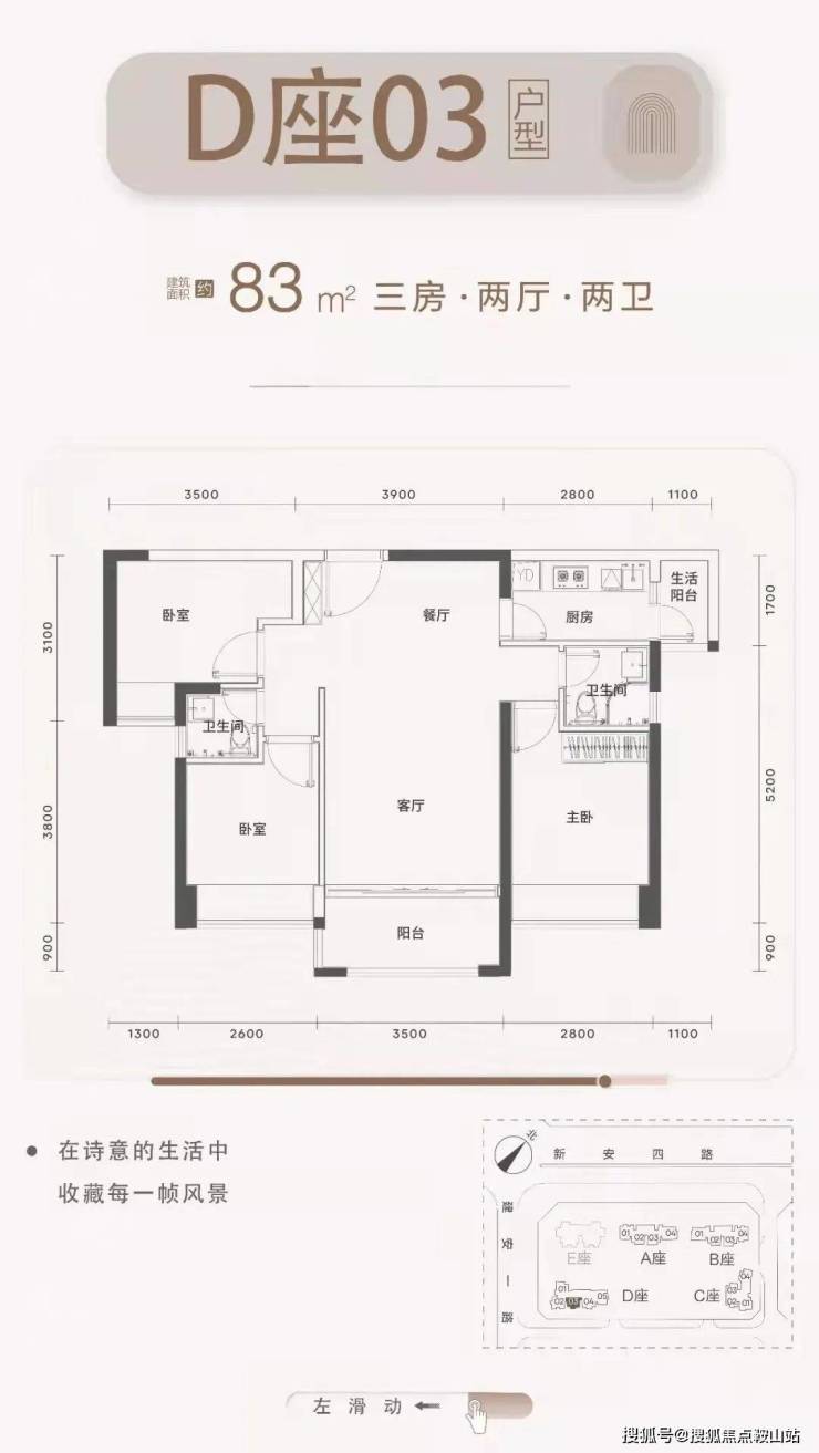 梯户比:A-C座2梯4户,D座2梯5户