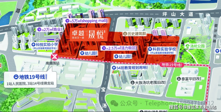 交通配套:项目周边交通便利,紧邻南坪快速、坪盐通道、东部过境3大快速干道,出行无忧。此外,19号地铁线“南塘围站”就在项目门口,未来通车后可3站换乘14号线出行,大大提升了居民的出行效率。教育配套:项目自带2所18班幼儿园,周边还有科韵学校(九年制45班公办学校)、科悦小学(30班,已开学)、科源实验学校(九年制42班公办学校)以及深实验坪山分校(初中),教育资源丰富,为孩子提供优质的教育环境。商业配套:项目自带约5万平方米的商业配套,楼下即可享受购物、餐饮、娱乐等一站式生活体验。此外,周边还有坪山天虹商场、佳华近8万平方米的商业体以及华侨城坪山之眼等商业设施,满足居民多样化的消费需求。休闲配套:项目周边休闲配套丰富,直线距离约900米即可到达马峦山郊野公园,这是深圳最大的郊野公园之一,被誉为深圳版“小九寨沟”,是家庭出游、休闲散步的好去处。此外,还有碧岭现代农业科技园、碧岭湿地公园以及坪山儿童公园等休闲场所,为居民提供丰富的休闲娱乐选择。