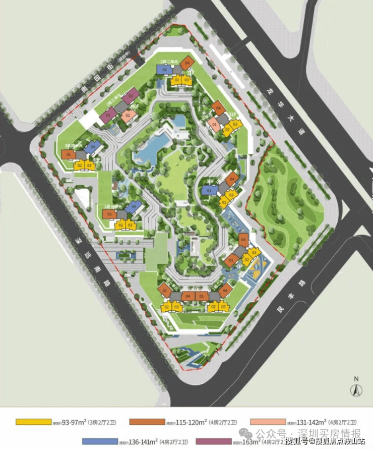 中洲迎玺园林效果图规划图来看三期同样规划有泳池