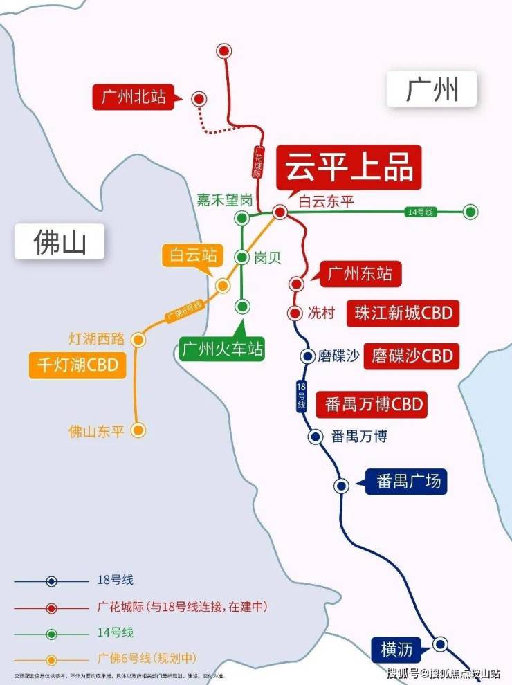 🚄广花城际(连通18号线,在建中)一轨串联广州东站、琶洲、珠江新城、万博中心、南沙等核心CBD区,畅达大湾区中山/珠海/香港/澳门等区域,一轨串联湾区核心城市。