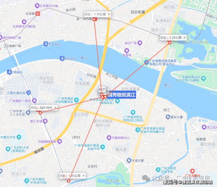 地铁:地块其实不近地铁站,最近2号线市二宫站距离约1.2公里,需要接驳,公共交通出行有壁。1站江南西/海珠广场,2站公园前/江南西;东侧10号线滨江东站在建中,未来可实现1站东湖,2站五羊邨,3站广州大道中。