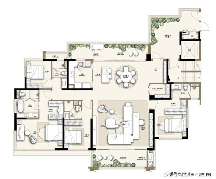 涵蓋恒溫泳池、香山書院、私宴廳、藝術方廳等七大功能摩登海派會所及女王空間、童玩天地等主題架空層,響應全家庭成員的美好需求
