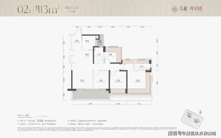 此外,项目还有约114㎡的4房2厅2卫,格局功能与113㎡相似,但客厅多出一个大尺度飘窗采光面,居住品质也十分舒适。