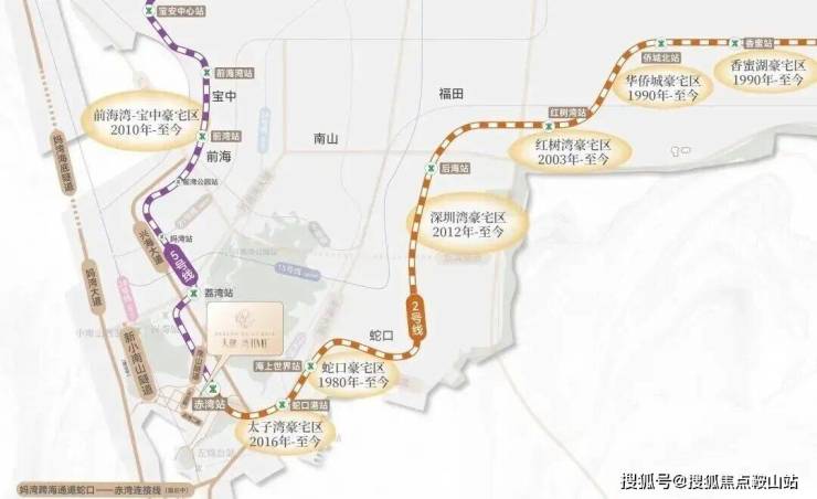 项目距2号线(豪宅线)与5号线(发展线)首发赤湾站约300m(直线距离),从此,坐地铁而不是站地铁,未来新小南山隧道(预计2027年竣工)、望海路升级等重大交通配套持续落地,咫尺间连通蛇口、前海。