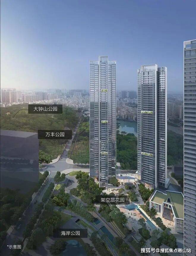 【三重立体园林体系,创造海岸特色都市文化领域】由海岸公园、大钟山公园、架空层公园,形成立体生态体系,有公共社区交流休闲空间和私享静谧空间。