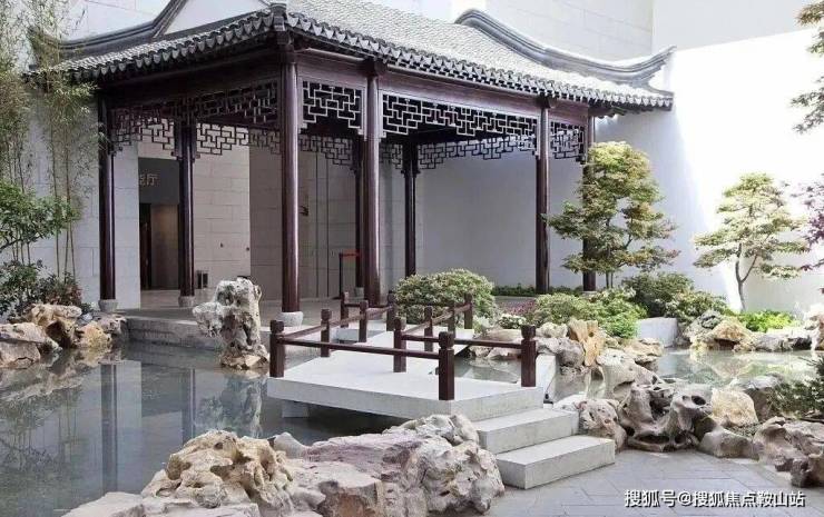 新中式庭院是现代文明背景下传统元素与现代材质激烈碰撞的产物,它强调“师法自然”的生态理念,以自然风光为主体,将庭院万象有机地融为一体,重在构造的精巧,更重在山水意境的创造。
