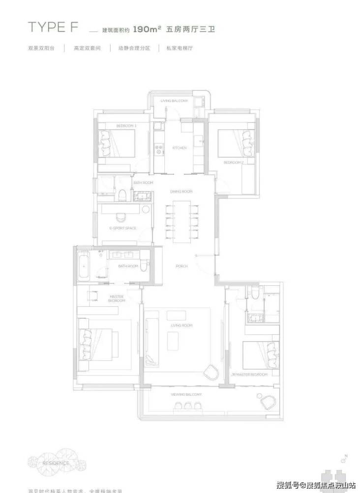 190产品为五房两厅三卫产品,充满了对云端人群生活的独特见解,南向双主卧,中西厨布局,打造纵向超长LDK一体化空间,产品所体现的不只是居住产品,更是特属客群所拥有的生活方式。