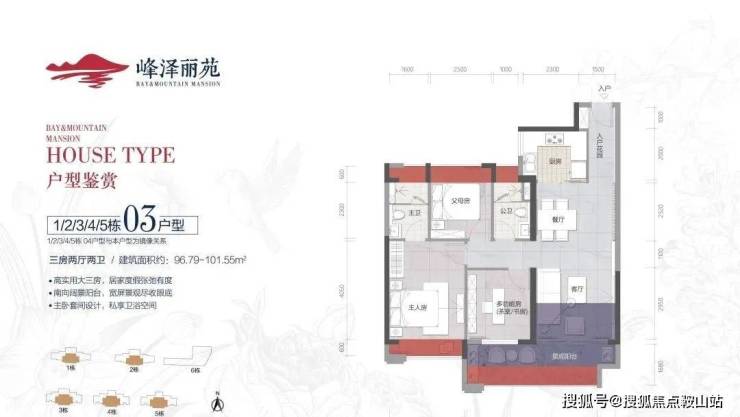 03/04户型97-102平三房两厅两卫舒适大三房是项目目前在售的性价比最高的明星户型,三房两厅两卫的户型设计,加上南向5.3米面宽超大阳台设计和主卧套间,超多赠送面积的飘窗令生活空间感十足。