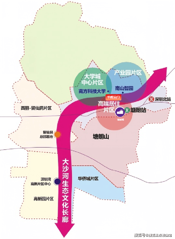 深圳六大总部基地之一,与西丽湖国际科教城联动,形成“产学研用”一体化生态。已入驻包括大疆创新、传音控股、天珑移动、乐普医疗、优必选、深信服等头部企业。