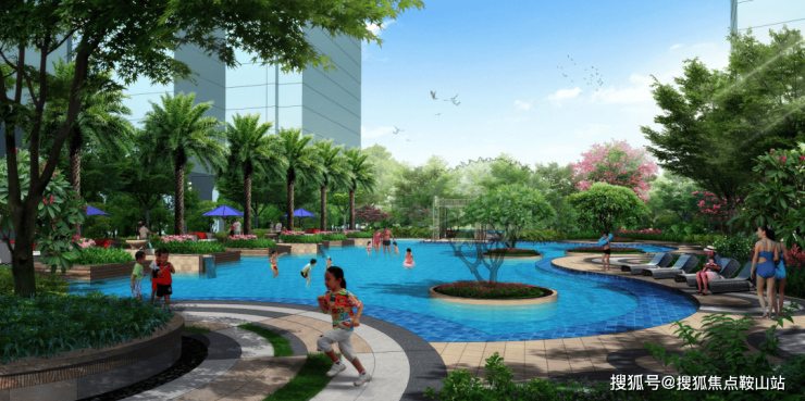 台地式花园,近 1000 平米的儿童戏水池。