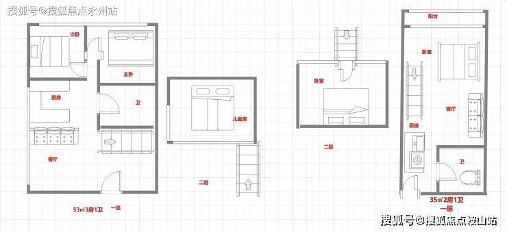 35㎡两居室:设计为两室一厅一卫,带阳台,通燃气,精装修交付