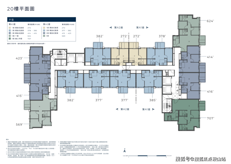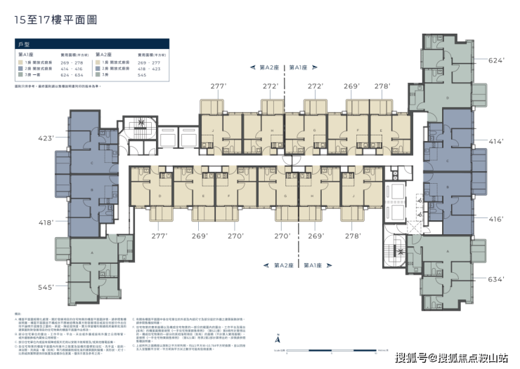 户型:一至三房以及特色户型,实用面积232-1589平方呎,其中一房约269呎-278呎,两房约374呎-424呎, 三房约545呎-707呎。