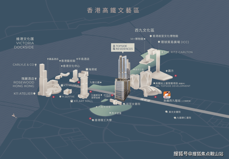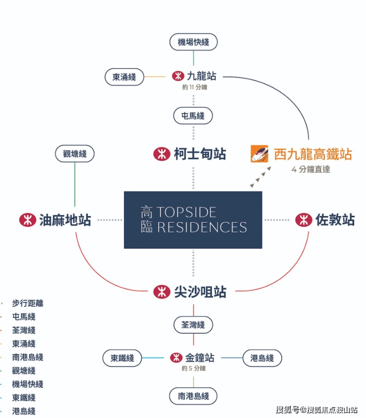 周边配套:坐落传统购物、消闲、商业区,生活亦自然多姿多采;中原麦景培又指,尖沙咀、佐敦不单云集各大商厦、酒店、商场,例如美丽华商场、K11 MUSEA、K11、iSquare、圆方等,而大街小巷也有各式各样的商铺、餐饮等,另外,该区也是文化艺术展览的集中地,包括香港文化中心、香港太空馆、香港艺术馆、西九文化区的戏曲中心,M+博物馆,故宫博物馆等多不胜数,就连演唱会的胜地红磡体育馆,都可徒步到达。还有西九龙站上盖商业发展地王XRL TOPSIDE,预计于2025年起分阶段落成,届时将吸引众多知名企业租户进驻,包括多间跨国企业如平安保险斥资113亿元入股,打造集团在港的地区总部;国际知名财富管理机构瑞银UBS亦已预租9层商业楼面,计划于2026年进驻,将带动区内租赁需求。