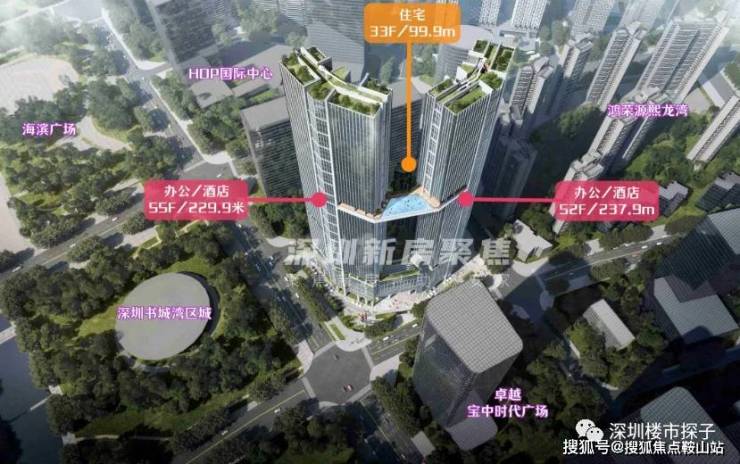 鸿荣源胤璇中心大厦位于宝安区新安街道宝华路与海天路交界处,规划办公51687㎡、酒店47000㎡、住宅20000㎡、商业5000㎡汇集多种业态。