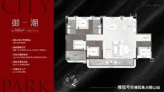 140㎡“鎏光/御潮”:西南/南向一线江景,双联阳台设计,LDK无界通透。