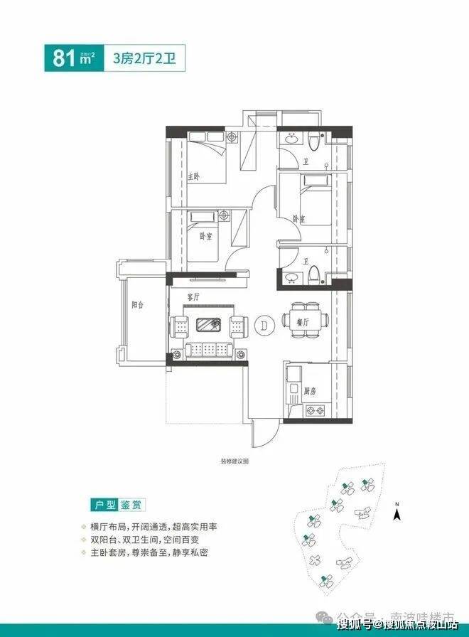 【超100%得房率】在售高层约81-129㎡四-五房,空间尺度舒适,采光优越,拓展面积和使用率极高,是目前市场上绝无仅有的稀缺户型;