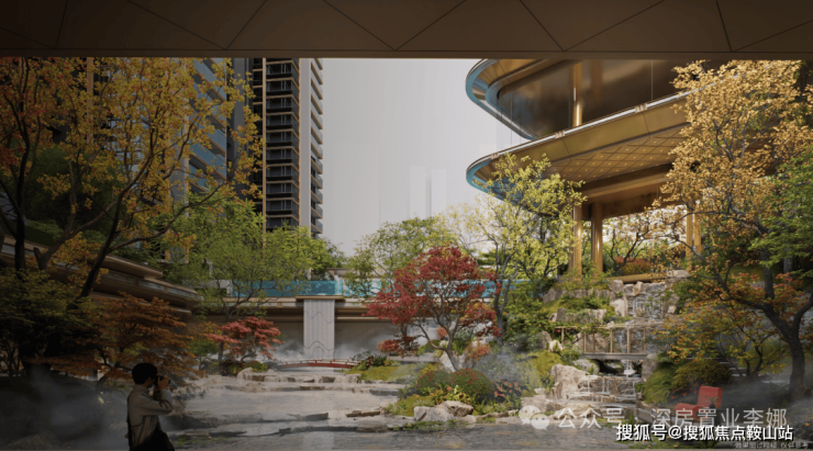 进入到小区大门,穿过气派的归家大堂,迎接你的将是15米高的垂直庭院,我们称之为景色溪谷。这里藏着李商隐的景色的诗意底蕴,700㎡的空间内,近60%的水域波光粼粼,下沉庭院,与亭台楼阁形成聚宝盆,藏风聚气,福泽延绵,山石、灵泉融为一体,乌秀婀娜,红凤吐艳,冬青常青,四季风景各异。春赏花。秋赏夜每次归家都是一场视觉盛宴,漫步其间,仿佛穿越山林花海,沧海月明的意境扑面而来。无边界泳池与下庭庭院无缝衔接,山水相连,动静相宜,尽显东方园林。艺术张力!