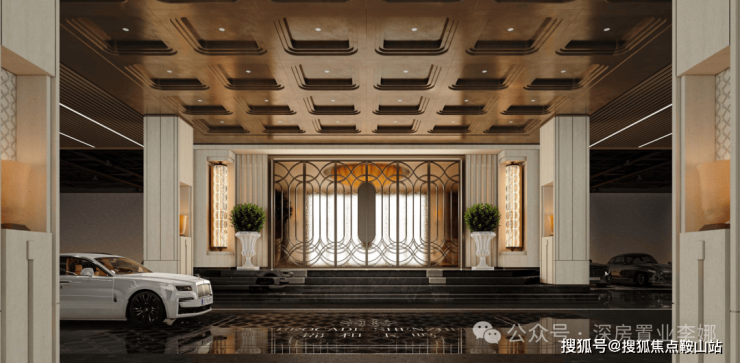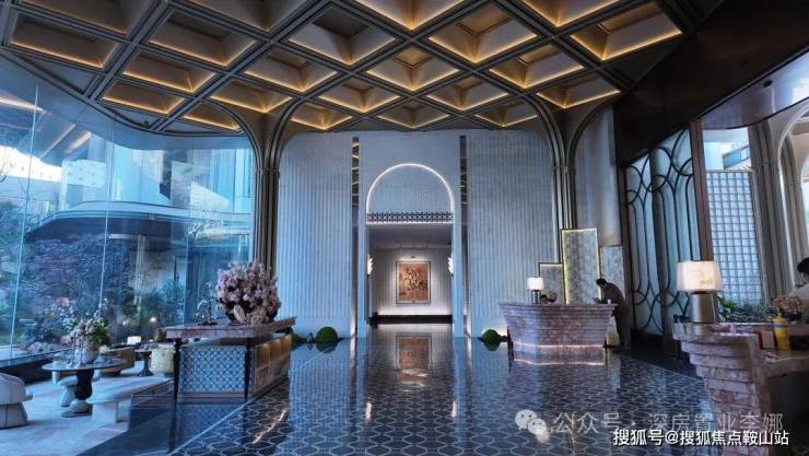 绿城景和玉鸣的归家前厅及大堂。从小区的大门进来,就是我们五星级酒店式的归家大堂,我们称之为金凤玉郎,6米的净高,延续着金玉镶嵌的奢华感。香槟色不锈钢结合着丰富的光影艺术天窗,地面则刻印宝相花。宝相花它是有多种花卉元素组合而成的,象征着深圳这座城市的包容性。又应会着宝安的山辉泽美,得宝而安的命名,寓意吉祥如意,幸福美满,珠光宝气,流光溢彩的美好祝福。大面宽的超白钢化玻璃,直面下沉庭院的景观,为您打造尊贵的归家体验。