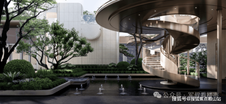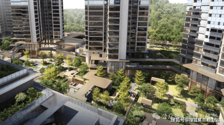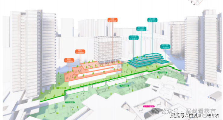 其中,内部园林面积约2.5万㎡,通过约8000㎡下沉式立体庭院、多层次绿化平台与架空层,弱化噪音影响。