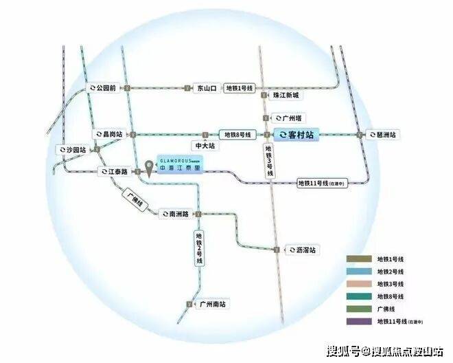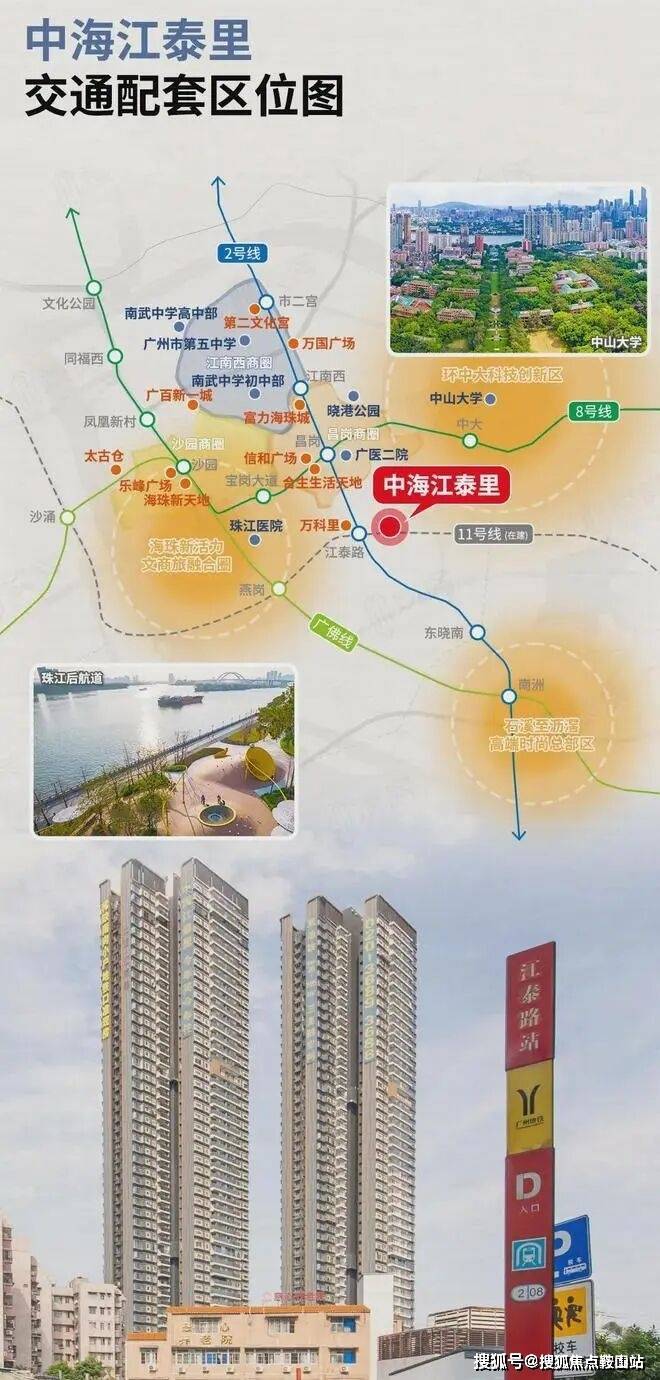 中海江泰里,海珠区文商旅融合圈地理中芯、广州未来文化经济中芯CCD,周边3公里分布2号线、8号线、广佛线以及在建的11号线,经地铁3站到中大,7站到珠江新城、琶洲,8站东山口。