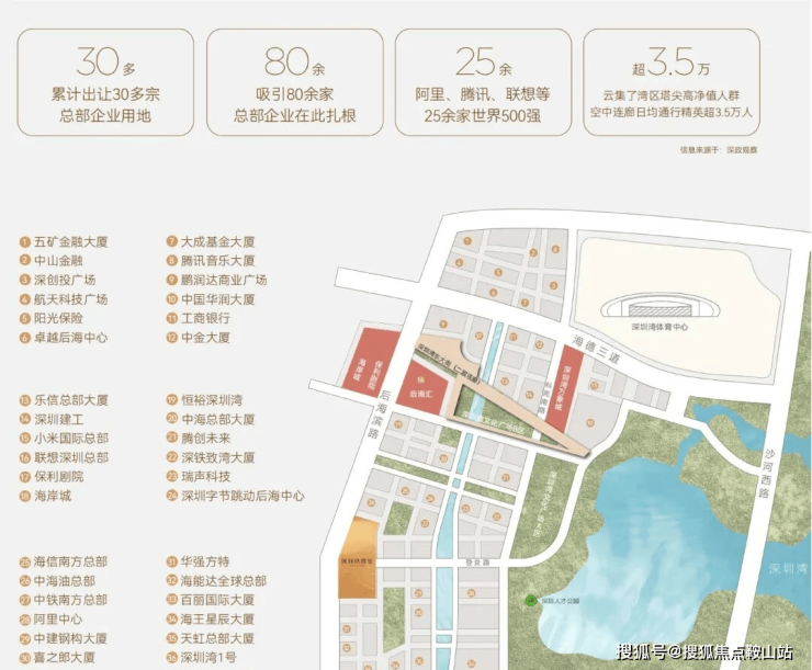 后海总部基地,地处粤港澳大湾区几何中心,是链接深圳各核心功能区的关键节点,是大湾区资源密度最高、制度最开放的总部经济聚集地,创富密度全国榜首,世界500强领袖级总部集群。深圳湾澐玺,全球核心城市的臻稀资产。(数据来源:深政观察)