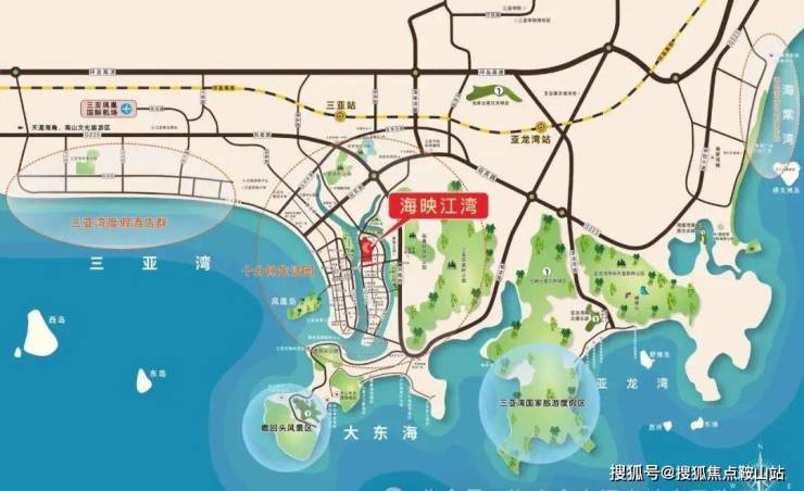 便捷交通:海映江湾项目位于河东路,北接迎宾路,南至鸿洲游艇码头,居三亚城市主干道解放路与凤凰路之间,距离三亚湾直线距离仅1.3公里,距离三亚汽车站约1.4公里,车程约6分钟,距离三亚凤凰岛约2公里,距离大东海旅游区约5公里,车程约13分钟,距离凤凰国际机场14公里,车程约37分钟。距离海棠湾约26公里,车程约40分钟。