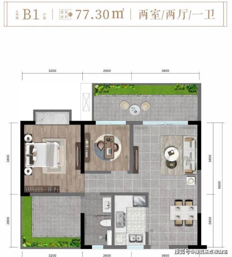 轻奢两居,LDKB一体化布局,延展生活空间尺度,观景阳台带独立花池,主卧配置瞰景飘窗,品质生活由此启幕。
