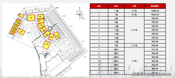 项目当前共计17套,未售面积约9770.83㎡;其中1000㎡以上大独栋共2套,767-820㎡独栋共计8套;403-414㎡空中花园别墅共计7套;
