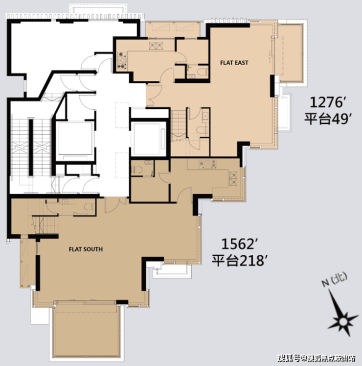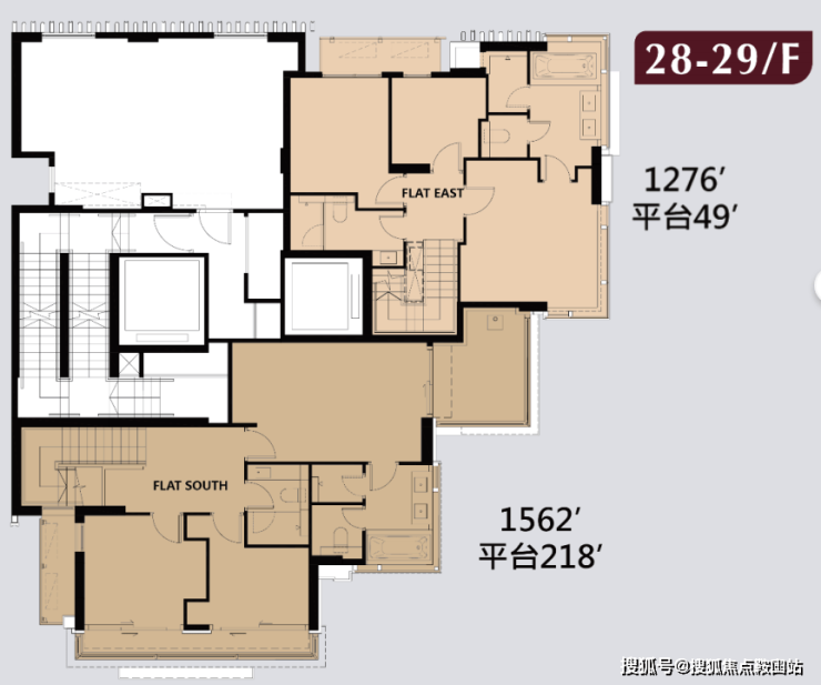 🔸面积最大则为顶层复式SOUTH,实用面积1562平方呎,3房1套户型,备有218平方呎平台。