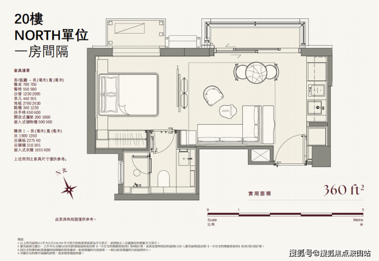 🔸最小面积为NORTH,实用面积360平方呎,属1房户型。