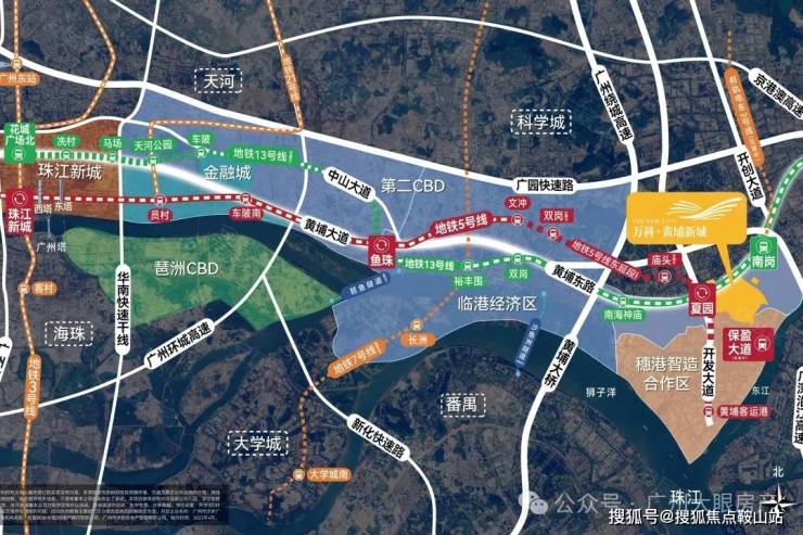 附近有广州最核心的地铁5号线保盈大道站,以及13号线的南岗站,可以直达珠江新城、金融城、鱼珠CBD