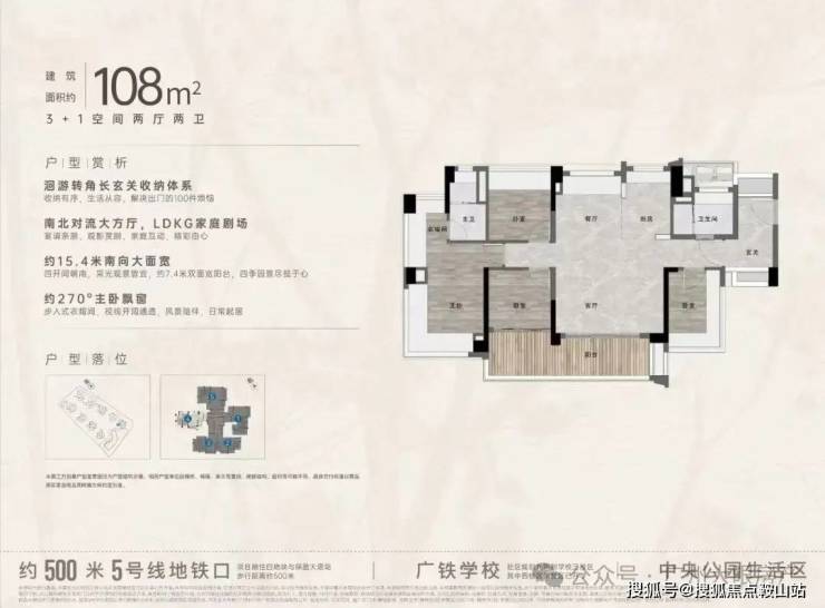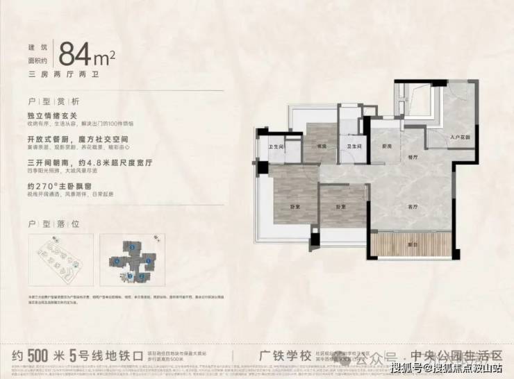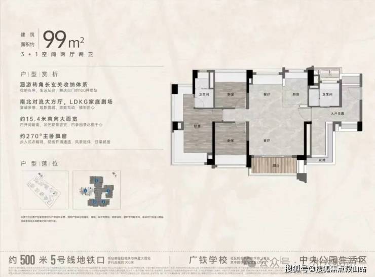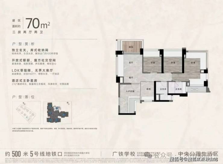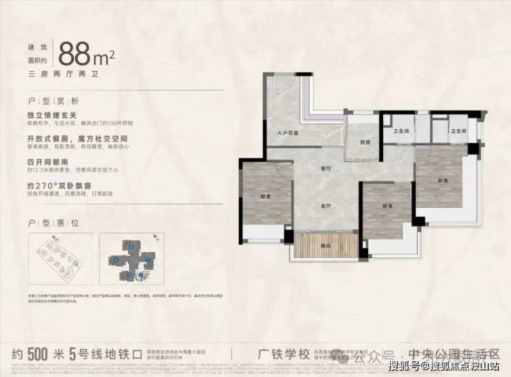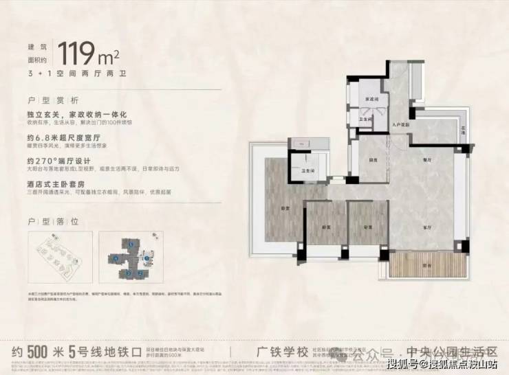 “中央公园”,紧邻大脚印公园,距离地铁约500米,紧邻学校、酒店
