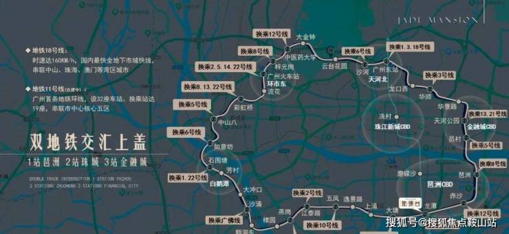⑦ 地铁11+18号线双轨交汇枢纽(1站琶洲-2站珠江新城-3站金融城)